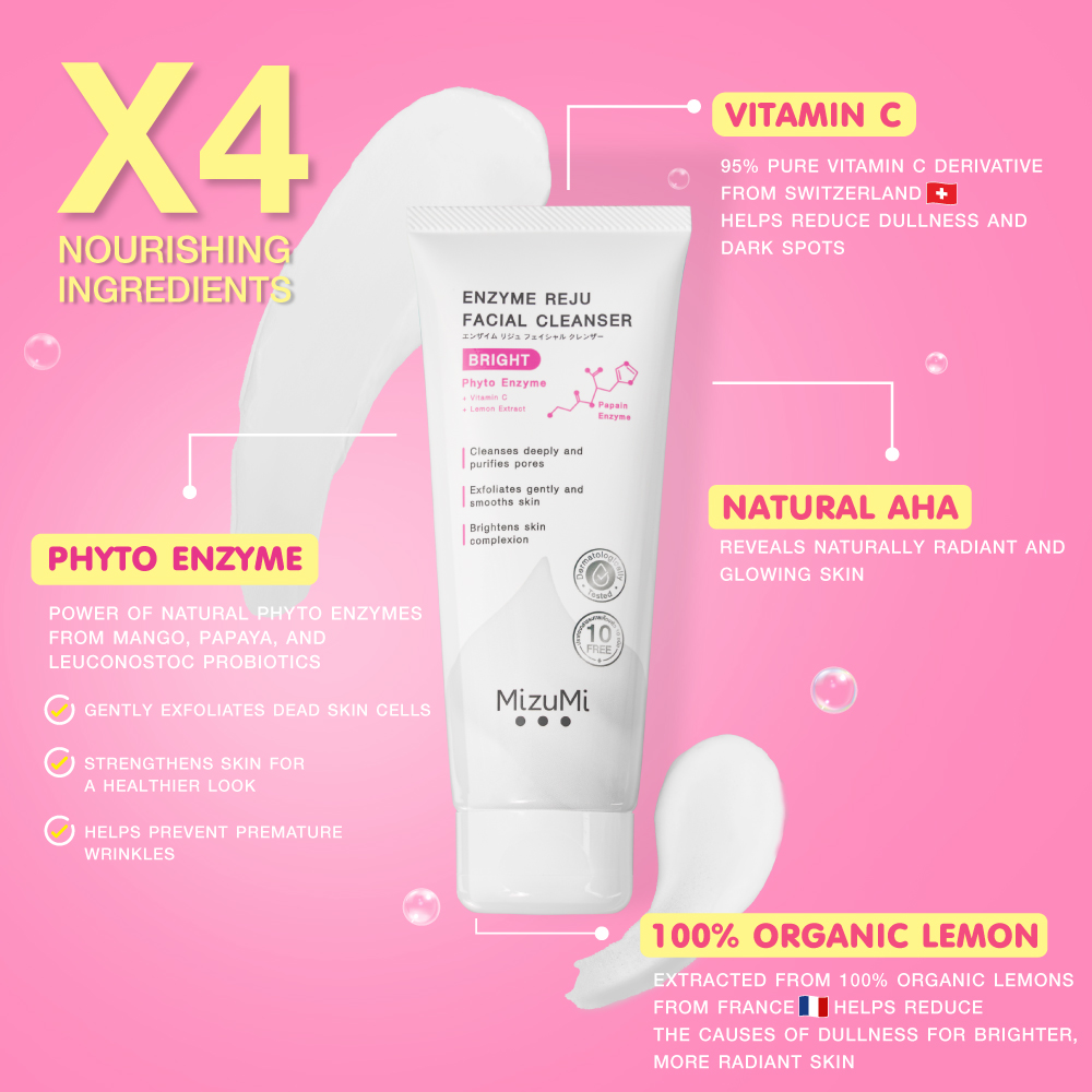 MizuMi Enzyme Reju Facial Cleanser Bright ???? Soft whipped foam that helps reduce dullness and reveal brighter, radiant skin. ✔️ Sodium Ascorbyl Phosphate • Brightens and helps fade dark spots for a more radiant complexion. ✔️ Tamarind Extract • Gently exfoliates dull skin to reveal naturally glowing skin. ✔️ Lemon Extract • Helps reduce causes of dullness, leaving skin looking luminous and clear.
