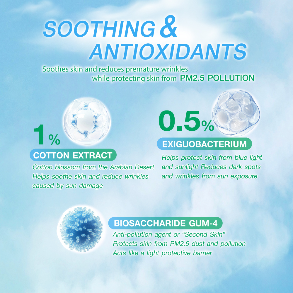 ✔️ Anti-Pollution — reduces irritation and sensitivity caused by pollution and PM2.5