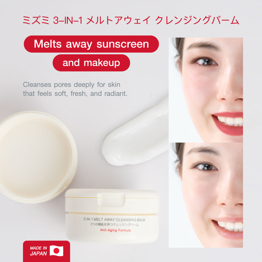 MizuMi 3-In-1 Melt Away Cleansing Balm ✔️ Cleansing balm enriched with 34 nourishing ingredients ✔️ Helps nourish skin, provides antioxidants, and prevents premature aging ✔️ Effectively removes sunscreen and waterproof makeup ✔️ Deeply cleanses pores and impurities ???? Balm to Milk — transforms into a milky texture upon contact with water 3 Functions of Cleansing Balm ???? Melt Away Dirt — dissolves sunscreen and waterproof makeup ???? Unclog Pores — clears out deep-seated impurities ???? Moisture Retention — helps maintain skin’s moisture ???? No Tear Formula Gentle on the eyes, leaves no filmy residue after rinsing