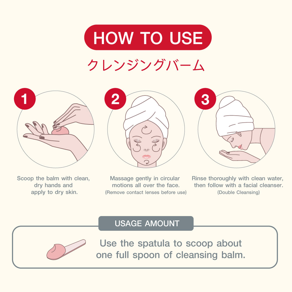 1. Scoop an appropriate amount onto dry, clean hands and apply to dry face 2. Massage in circular motions with dry hands 3. Rinse off thoroughly with water