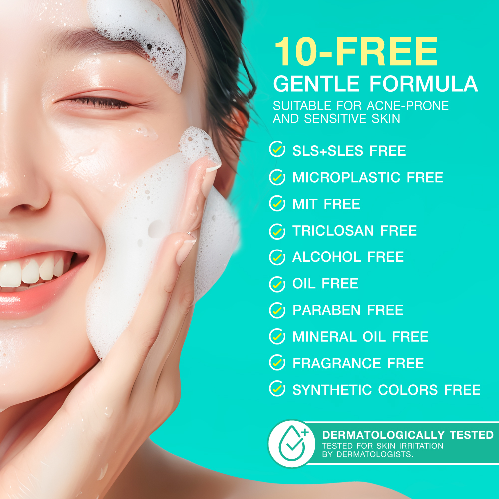Myristic Acid, Water, Glycerine , Propylene Glycol, Potassium Hydroxide, Palmitic Acid, Decyl Glucoside, Lauramidopropyl Betaine, Stearic Acid , Polyquaternium-7, Glyceryl Stearate SE, Hamamelis Virginiana Water, PEG-8, PEG-7 Glyceryl Cocoate, Salicylic Acid, PEG-20 Glyceryl Triisostearate, DMDM Hydantoin , Phenoxyethanol, Glycol Distearate, Caprylic/Capric Triglyceride, Dimethicone, Tetrasodium EDTA, Behenyl Alcohol, Synthetic Beeswax, PEG-90M, Butylene Glycol, Allantoin, o-Cymen-5-ol, Iodopropynyl Butylcarbamate, Carica Papaya Fruit Extract, Mangifera Indica Fruit Extract, Propanediol, Isopentyldiol, Inulin, Pentylene Glycol, Leuconostoc/Radish Root Ferment Filtrate, Ceramide NP, Dipropylene Glycol, Hydrogenated Lecithin, Glyceryl Stearate, Lecithin, Xanthan Gum, Cholesterol, Ceramide NS, Ceramide AS, Ceramide AP, Ceramide EOP
