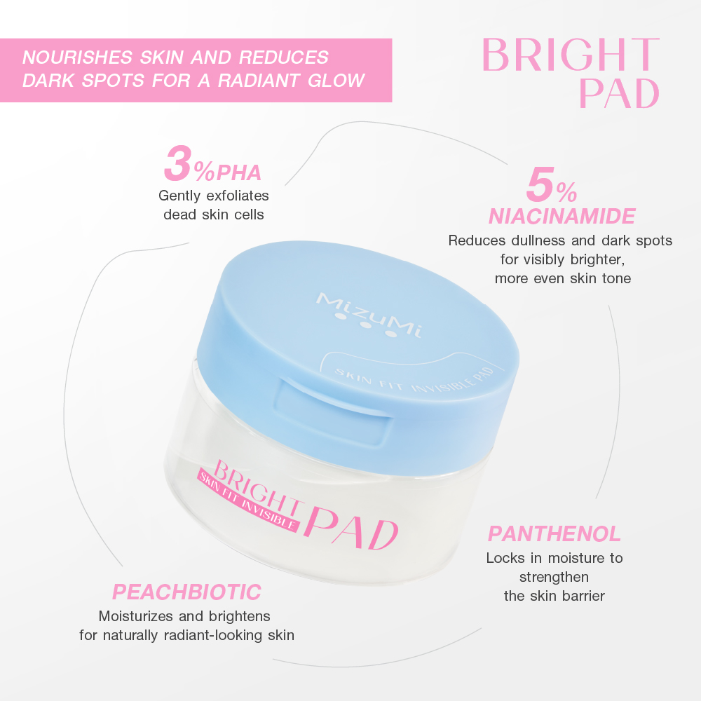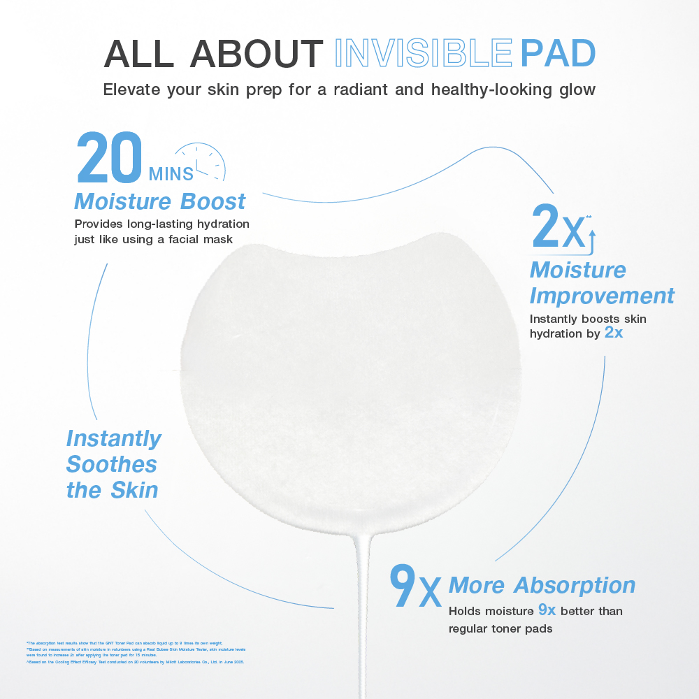 MizuMi Skin Fit Invisible Pad Fits perfectly to the skin, delivering 9X hydration* — as refreshing as a sheet mask! Available in 3 formulas, suitable for all skin types: ???? SOOTHING – Calms and hydrates for healthy, balanced skin. ???? BRIGHT – Brightens the complexion and helps fade dark spots. ???? ACNE – For oily and acne-prone skin; gently exfoliates for smoother, clearer skin. ???? The ultimate prep step for plump, hydrated skin! ✔️ Ultra-thin, soft pads that adhere seamlessly to every curve of the face. ✔️ Infused with 9X* concentrated essence for intense nourishment. ✔️ Keeps skin hydrated and dewy for up to 20 minutes. ✔️ 2X** increase in skin moisture instantly after use. ✔️ Provides an immediate cooling effect — lowers skin temperature by 5°C*. ✔️ Made from natural fibers that are biodegradable and eco-friendly. * Based on GNT Toner Pad absorption testing — the pad can absorb up to 9 times its own weight in liquid. ** Based on skin hydration test results using the Real Bubee Skin Moisture Tester, showing a 2x increase in skin moisture after applying the toner pad for 15 minutes. *** Based on a cooling efficacy test conducted on 20 volunteers by Milott Laboratories Co., Ltd., June 2025.