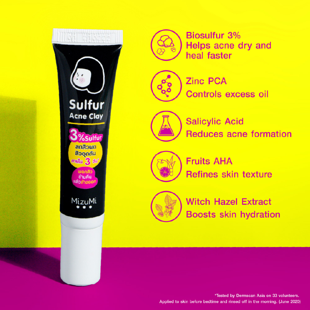 MizuMi Sulfur Acne Clay Sulfur acne clay mask treatment ✔️Reduces whiteheads and clogged pores within 3 days ✔️Gentle and safe for acne-prone skin ✔️Can be applied to the whole face and used together with acne treatments Soft, smooth cream texture that applies easily without drying out the skin **Has a mild sulfur mineral scent — this is normal.