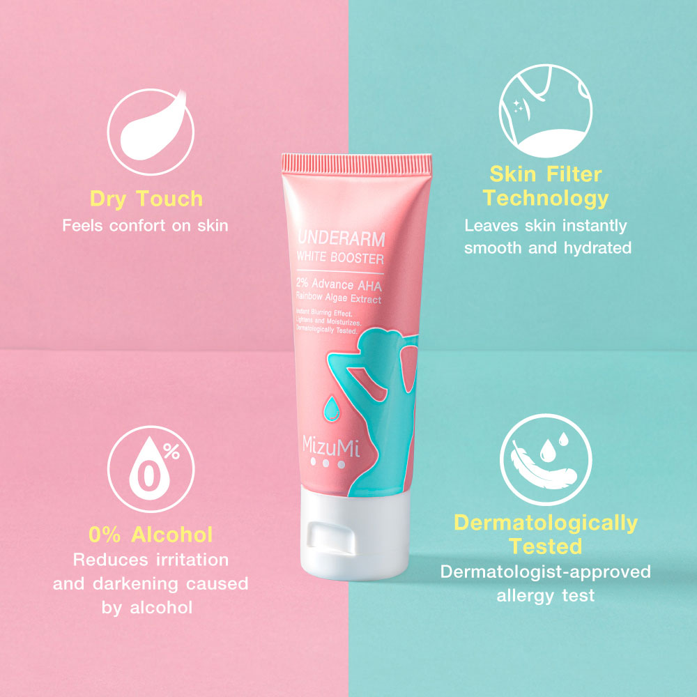 A gentle care product for underarms, inner thighs, and skin folds — helps smooth and instantly blur uneven skin. ✔️ Restores smoothness to underarms, inner thighs, and the back of the neck. ✔️ Exfoliates and blurs dull skin for an instantly even, refined look. Each tube contains: • 2% Advance AHA – French-origin AHA • Gently exfoliates with encapsulation technology for gradual release. • Does not cause peeling, redness, or irritation. • Removes dull, rough skin and reveals a smoother, brighter, more radiant tone. • Rainbow Algae Extract – Natural algae extract from France • Helps reduce melanin production for a more even and luminous skin tone. • Triethyl Citrate – Natural corn-derived ingredient • Helps reduce body odor and inhibit bacterial growth. • Suitable for sensitive skin areas • 0% Alcohol – Minimizes irritation risk • Dermatologically Tested – Proven safe and non-irritating under dermatological supervision.